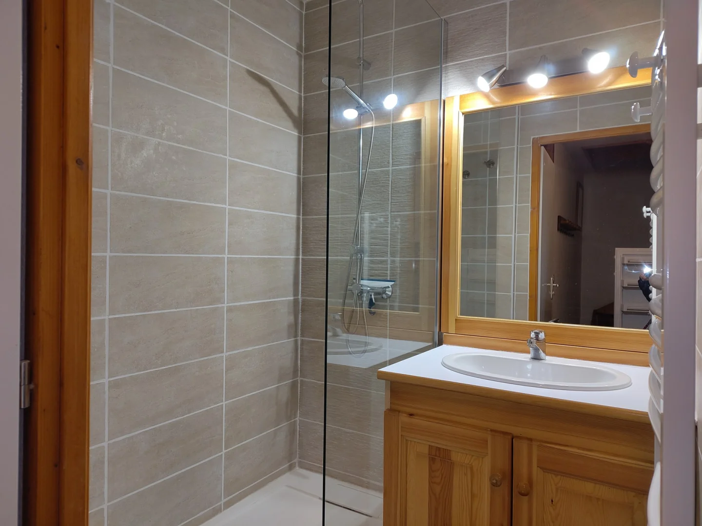 Salle de Bain : douche, lavabo, WC