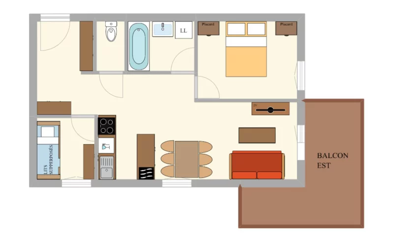 Exposition : Est et Sud avec balcon aménagé et belle vue dégagée